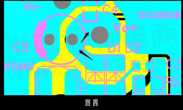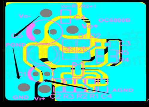 OC6800B电感和续流二极管的PCB走线如下图三: