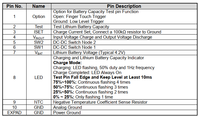 (至少一秒),便可触发 TEST 脚位的电量判读功能,进而使 LED 闪烁。如下图: