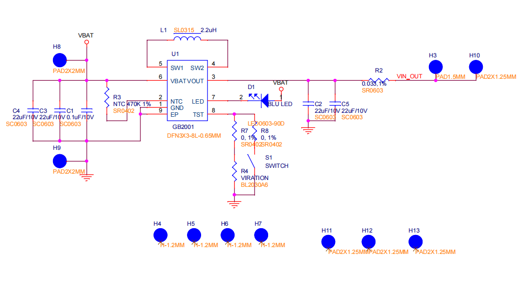 当主要电源存在并且高于最小系统供电电压时,GB2001以正向降压模式运行,以高达1.5A的电感器电流为锂电池充电。当主要电源被移除时,GB2001以反向降压模式运行,并防止系统降至最小工作电压以下,以高达3A峰值电感器电流的速率放电锂电池。