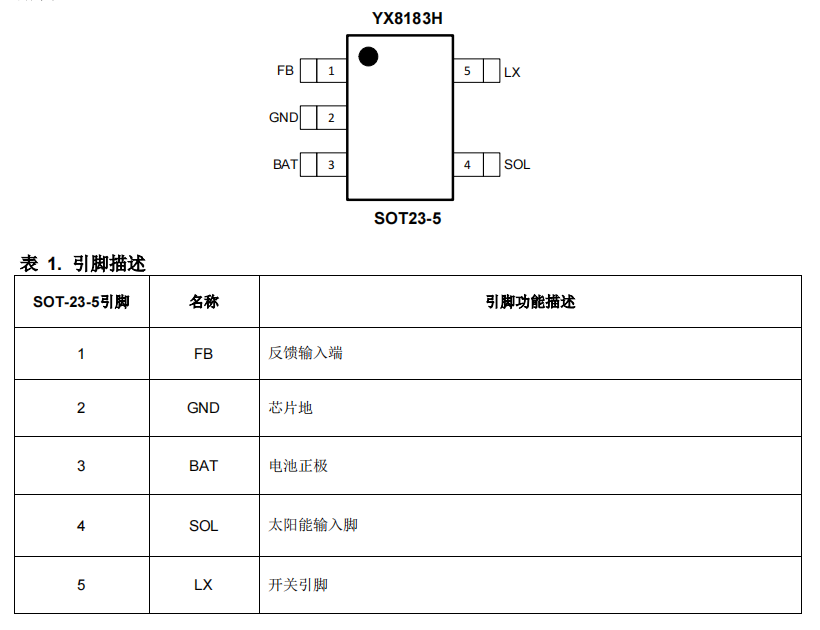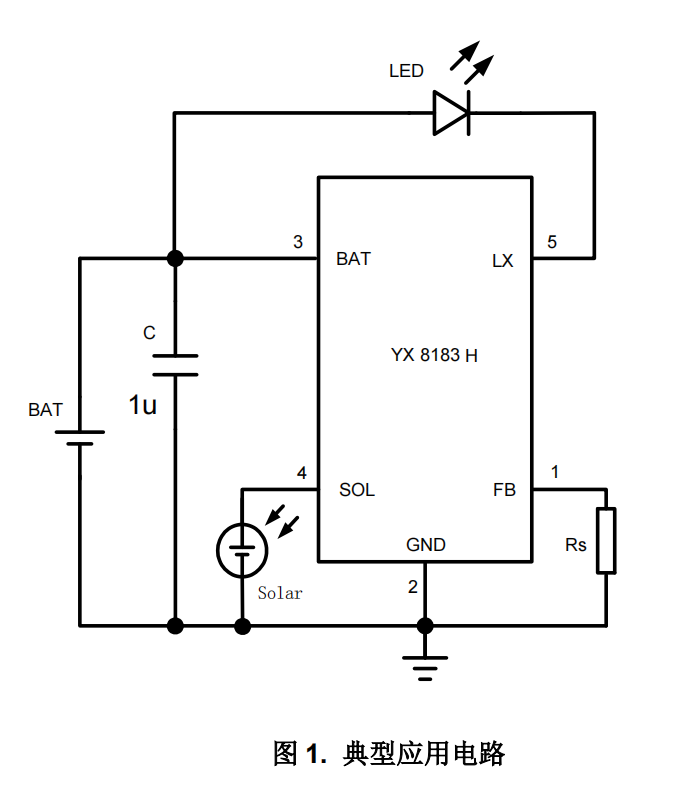 YX8183H 是一款支持太阳能 LED 驱动控制芯片,适用 于 3.7V 锂离子电池供电的太阳能产品。