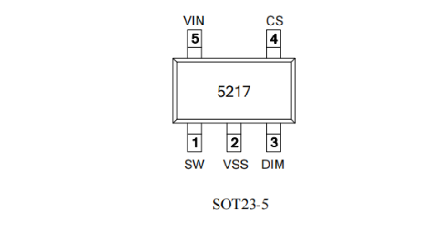 OC5217采用的是SOT23-5封装,引脚顺序如图所示,兼容市面上同类产品。