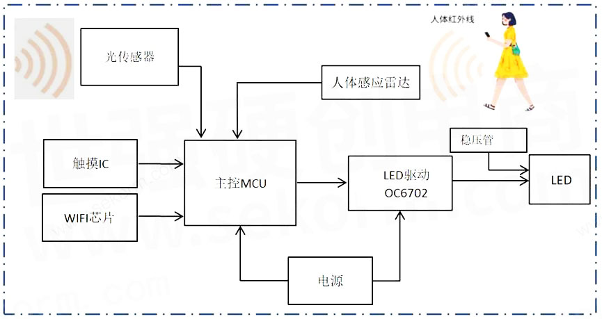 LED驱动器在感应台灯里的应用。
